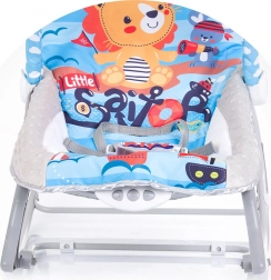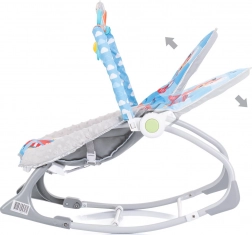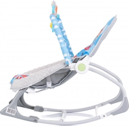 Praktische en comfortabele 2-in-1 vibrerende wipstoel voor baby’s vanaf de geboorte, die dient als wipstoel én stoeltje. Biedt zachte vibraties, prettige melodieën, een verstelbare rugleuning en een boog met hangende speeltjes voor motorische ontwikkeling en plezier. De veiligheid wordt gewaarborgd door 3-puntsgordels en een stabiele constructie.