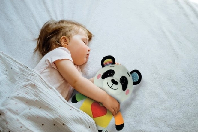 Deze knuffelzachte pluchen panda is de ideale metgezel in het bedje. Zoete melodieën creëren een kalmerende sfeer en helpen je kindje zachtjes in slaap te vallen. De pasteltinten en het vriendelijke uiterlijk ondersteunen de visuele waarneming en een gevoel van geborgenheid.