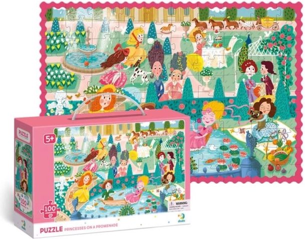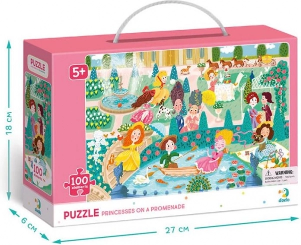 Ontdek de betoverende wereld van prinsessen met de DODO kinderpuzzel, die indruk maakt met levendige kleuren en een gedetailleerde afbeelding van een tuinpromenade. Het leggen van 100 stukjes in het royale formaat 65 × 45 cm is ideaal voor kinderen vanaf 5 jaar – voldoende uitdagend, maar nog steeds leuk.