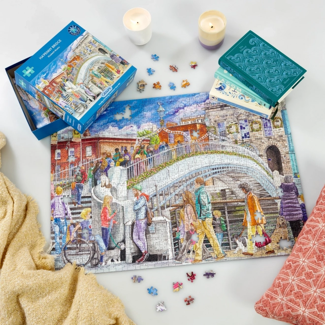 Dommel weg in een wereld van rust en nostalgie met de premium puzzel GIBSONS Ha'penny Bridge. De afbeelding vangt een sfeervol tafereel met nadruk op kleuren en details, wat zowel beginners als ervaren puzzelaars zal bekoren. De 1000 stukjes bieden een ideale uitdaging voor lange avonden en gezellige momenten met het gezin.
