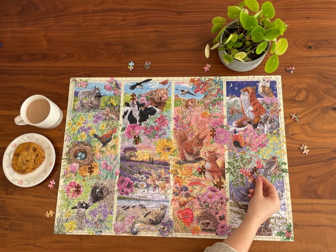 Geniet van ontspannende uurtjes met een puzzel die de sfeer van lente, zomer, herfst en winter in één beeld vangt. Puzzels van GIBSONS staan bekend om hun hoogwaardige afwerking en rijke kleuren die de fijne details van het motief benadrukken.