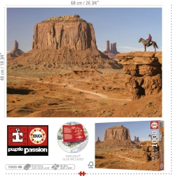 Monument Valley staat bekend om zijn unieke rotsformaties en nu kunt u met deze puzzel met 1000 stukjes een stukje van die schoonheid in huis halen. De gelegde puzzel heeft een afmeting van ongeveer 68 x 48 cm en is ideaal om in te lijsten en tentoon te stellen.
