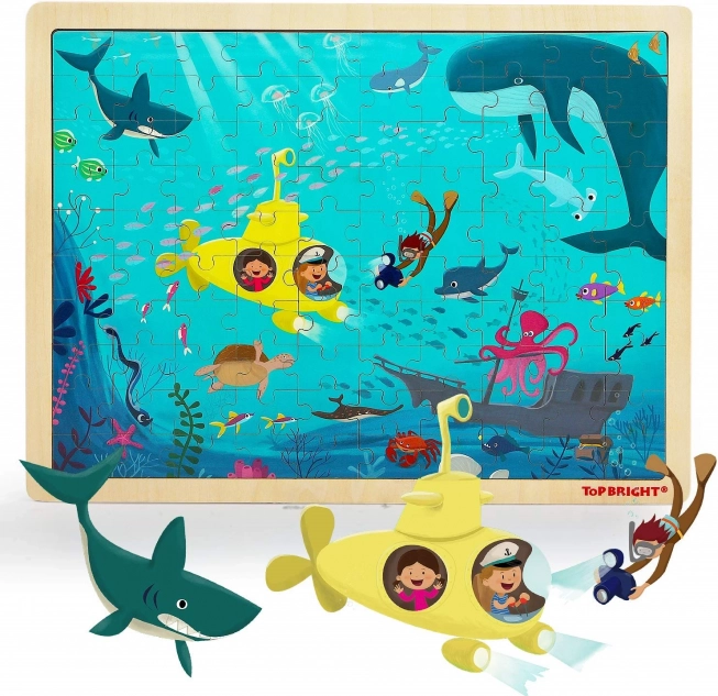 TOP BRIGHT houten puzzel Zeewereld biedt plezier en stimuleert de verbeelding van kinderen met 100 stukjes op een stevige plaat die als ondergrond dient.