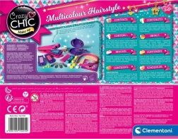 Ontdek de creatieve wereld van kapsels met de Crazy Chic haarstudio van CLEMENTONI. Dankzij de innovatieve haarverf-stijltang maken kinderen moeiteloos modieuze gekleurde lokken, regenboogkrullen en originele kapsels. Plaats de kleurtabletten in de speciale compartimenten en breng de kleur over op het haar – een snel, leuk en veilig stylingstudio voor thuis.
