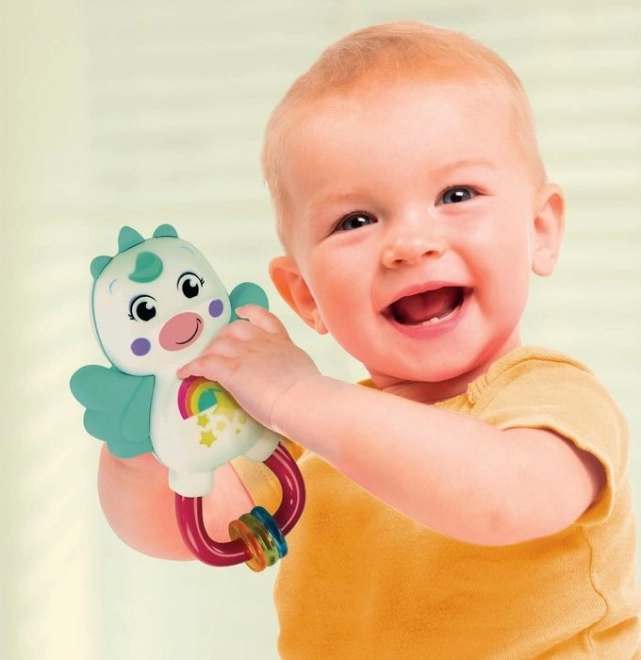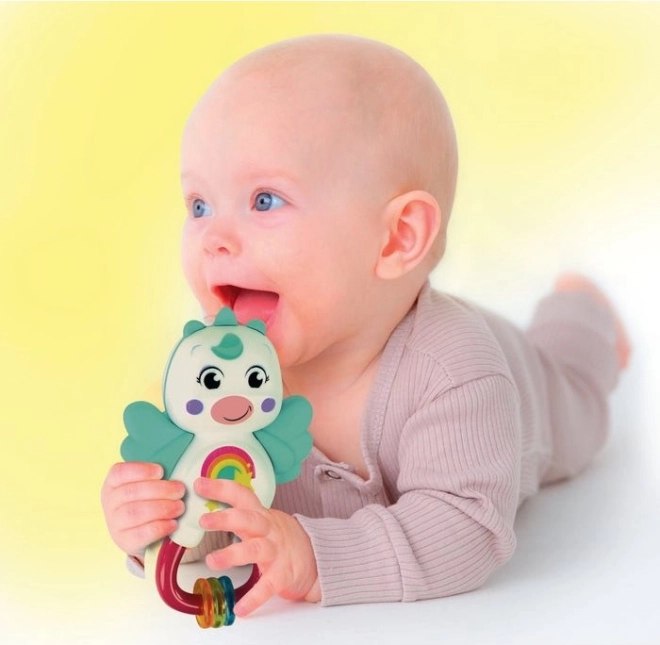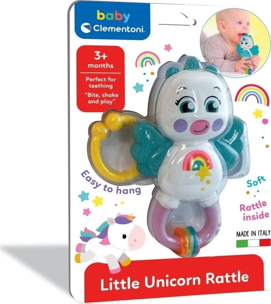De Interactieve rammelaar Eenhoorn is ontworpen voor de natuurlijke ontwikkeling van je kind. De combinatie van zacht rubber op de vleugeltjes voor veilig bijten en diverse texturen biedt rijke multisensorische stimulatie. De lichte constructie past in kleine handjes en stimuleert zicht, gehoor en tast.