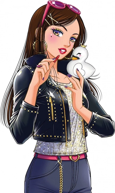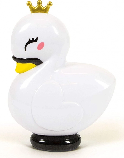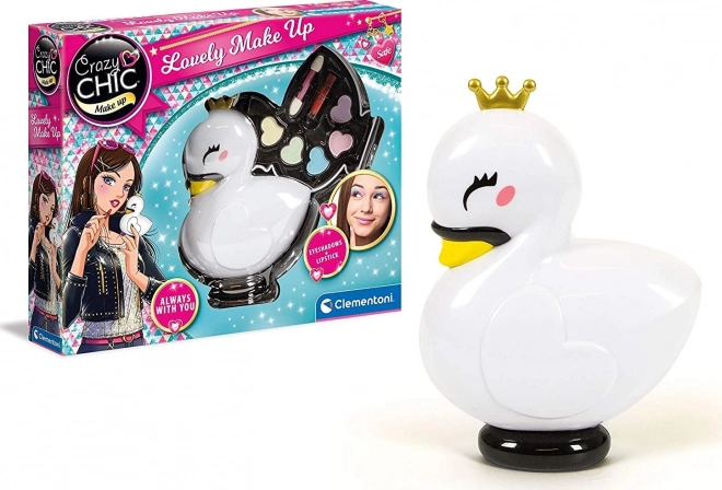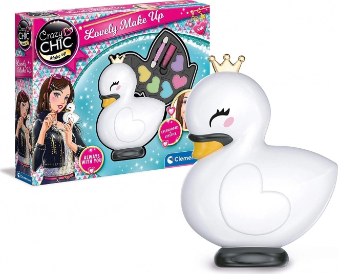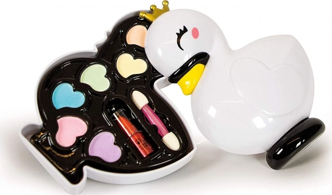 Het verzamelbare etui in de vorm van een zwaan met gouden kroontje verrast met zijn look en stimuleert creatieve spelletjes en het leren make-uppen volgens de instructies.