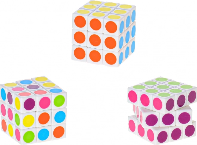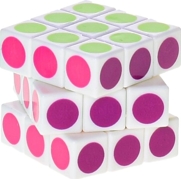 Deze compacte puzzelkubus met gekleurde stippen biedt een frisse, speelse variant op de klassieke rubiks. Dankzij de soepele draai en helder gekleurde cirkels is de kubus perfect voor snel oplossen en ontspannende momentjes tussendoor.