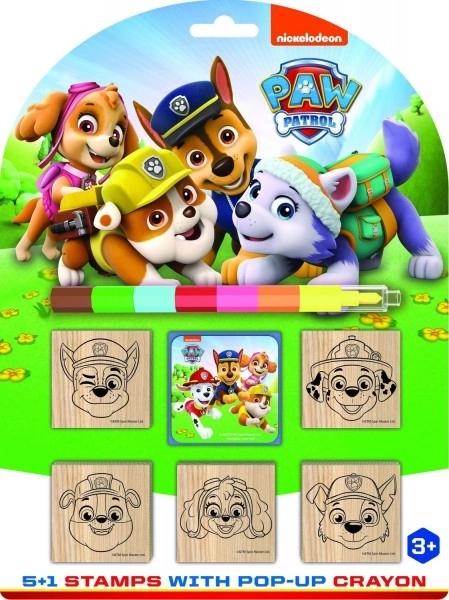 Ontdek geweldig plezier met stempels die de creativiteit, verbeelding en fijne motoriek van kinderen bevorderen. De set bevat 5 houten stempels, een gekleurde kussen met motieven van Paw Patrol en een zevenkleurige inklapbare krijtje.