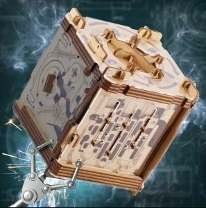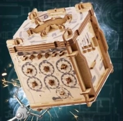 De houten puzzel verrukt zowel verzamelaars als beginners: 167 onderdelen, hoogwaardig berkenhout, elementen van metaal en kunststof, doordachte overbrengingen en draai-elementen. Speel solo of betrek familie en vrienden. Na het oplossen kan de box opnieuw worden gesloten en doorgegeven – zo wordt het plezier vermenigvuldigd.