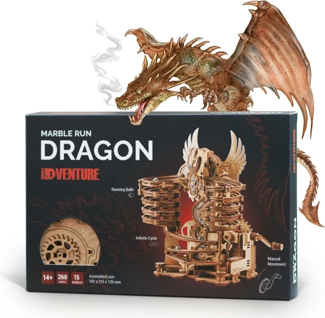 Ontdek de magie van mechanica met de verfijnde knikkerbaan MARBLE RUN DRAGON van IDventure. Draai aan de slinger, stuur de knikkers met de lift naar boven en kijk hoe ze razendsnel over spiralen en gebogen rails zoeven. Met de wissel kies je de baan die de knikkers volgen, waardoor elke run uniek is.