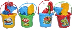 Praktische kindersandset met een klein emmertje van 10 × 11 cm, ideaal voor zowel speeltuin als strand. Bevat een emmer, hark, schep en 3 vormpjes (vis, zandtaartje, eendje). Verkrijgbaar in 4 kleuropties – blauw, rood, geel en groen.