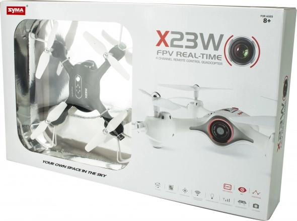 Hij is uitgerust met een 6-assige gyroscoop, waardoor de vlucht zeer stabiel is en het model wendbaarder en behendiger wordt. Bovendien heeft hij een geïntegreerde camera met live videostream naar het display van je telefoon en opname in 640×480p-kwaliteit. Je kunt dus video’s opnemen en foto’s maken van je luchtavonturen! Het model kan uitsluitend met een telefoon worden bediend en je kunt zelfs een route programmeren die het model daarna zelfstandig aflegt. Alles via de mobiele app. Niet alleen bij minder goede lichtomstandigheden zul je het LED-licht waarderen waarmee de Syma X23W is uitgerust. Deze drone bezorgt het hele gezin plezier en dankzij zijn formaat kun je hem overal mee naartoe nemen!