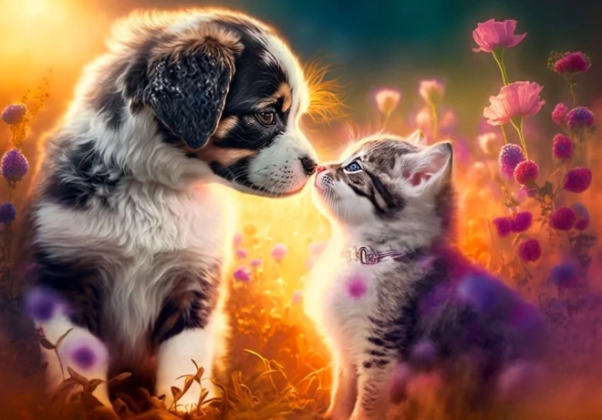 Ontdek de magie van “nieuwe vriendschap” tussen een hondje en een kat. De puzzel met 500 stukjes biedt een fijne uitdaging voor zowel kinderen als volwassenen en vormt na het leggen een elegante afbeelding van 47 × 33 cm.