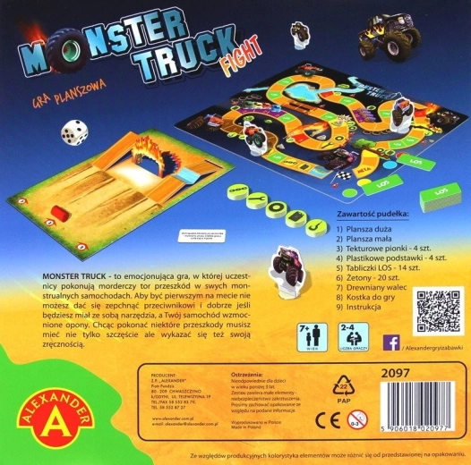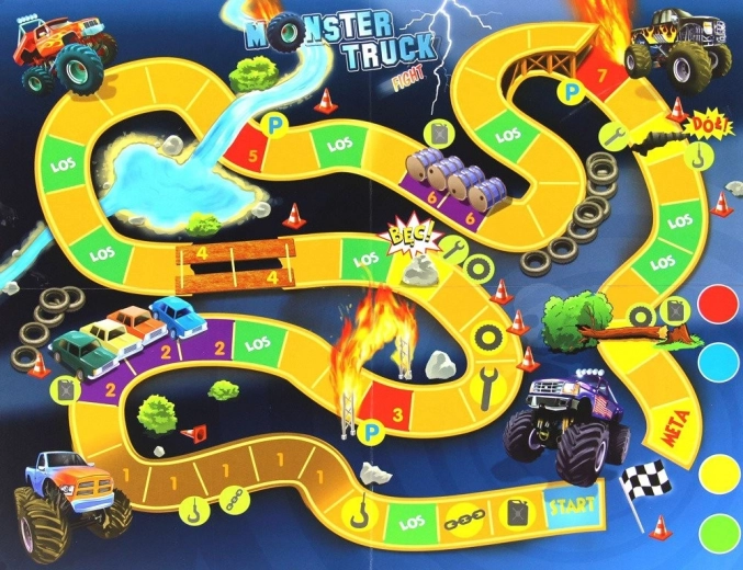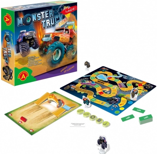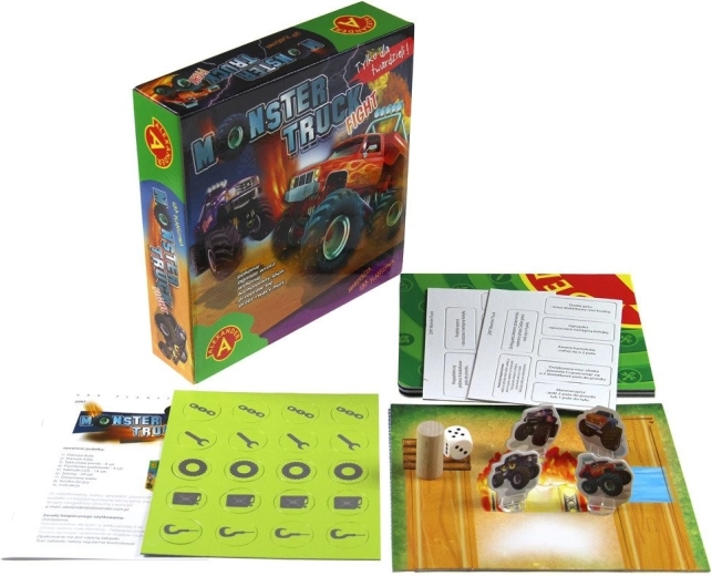 Een spannend spel waarin deelnemers een moordend hindernisparcours afleggen in monstertrucks. Degene die als eerste finisht, is degene die zich niet door de tegenstander laat wegduwen. Een set gereedschap en versterkte banden helpen je daarbij. Spelers zullen dit bordspel geweldig vinden vanwege de kartonnen pionnen in de vorm van monstertrucks en het extra ruime kleine speelveld, waar je een watergracht, een sprong en een vurige poort met een houten rol moet overwinnen.