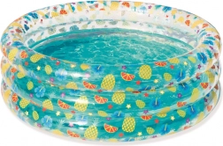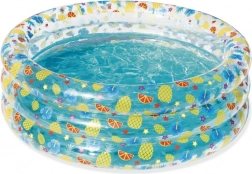 Verras kinderen met zomerse verfrissing in een opblaasbaar zwembad met een vrolijke fruitprint. Dankzij de diameter van 170 cm en hoogte van 53 cm is er volop ruimte om te spelen, terwijl de drie-ringconstructie stabiliteit biedt en de zachte opblaasbare bodem voor comfort zorgt. Het zwembad is gemakkelijk op te blazen en te laten leeglopen, ideaal voor kinderen vanaf 6 jaar.