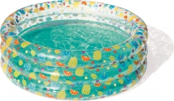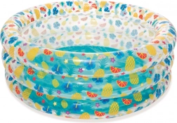 Dit BESTWAY kinder-opblaaszwembad met transparante wanden en een kleurrijke fruitprint brengt zomerse sfeer en veel waterpret naar de tuin. Dankzij de compacte afmetingen past het ook in kleinere ruimtes en na het laten leeglopen is het eenvoudig op te bergen.