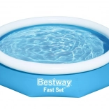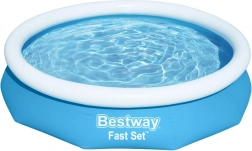 Het Bestway Fast Set zwembad met de afmetingen 305 x 66 cm is de perfecte keuze voor wie een snelle en praktische verfrissing zoekt. Je hoeft alleen de bovenste ring op te blazen en het zwembad met water te vullen - het hele proces duurt slechts een paar minuten. De tank stijgt stabiel tijdens het vullen, wat veiligheid voor kinderen garandeert.