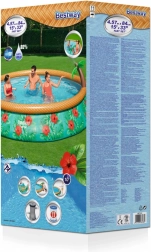 Geniet van de hete zomerdagen met dit ruime opblaaszwembad van Bestway met een afmeting van 457 x 84 cm. Het zwembad heeft een tropisch ontwerp en een ingebouwde sproeier voor verfrissing en plezier voor het hele gezin.