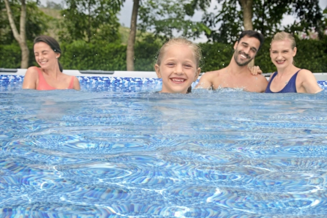 Het robuuste metalen frame van het zwembad zorgt voor een lange levensduur en weerstand tegen corrosie, waardoor dit zwembad ideaal is voor langdurig gebruik buitenshuis.