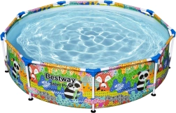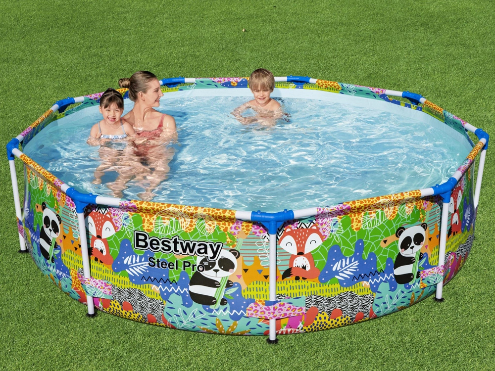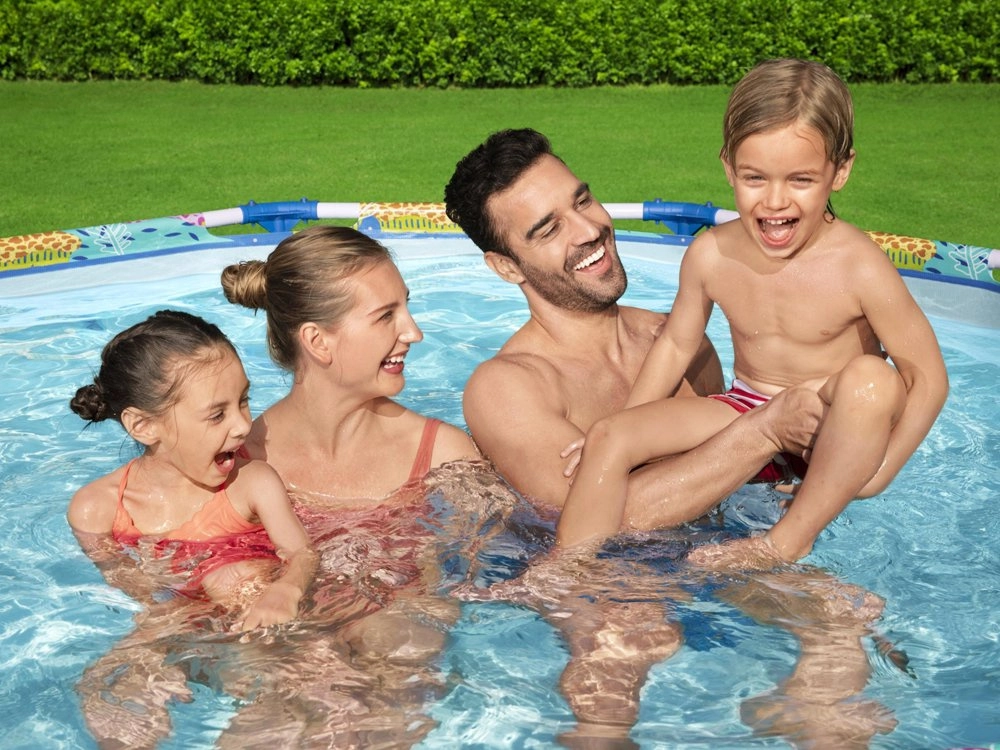 De ideale keuze voor kleinere tuinen, erven of terrassen: het ronde framezwembad van BESTWAY met eenvoudige montage zorgt voor verkoeling en volop plezier voor kinderen en ouders. Het stabiele stalen frame en de hoogwaardige zachte wanden met vrolijke dierengrafieken creëren een veilige omgeving voor waterpret.
