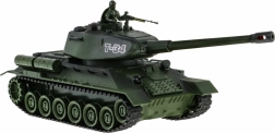 De set combineert een groene T‑34 en een grijze Tiger – iconische machines die het tegen elkaar opnemen in spannende IR-duels. Het 2,4 GHz-systeem laat meerdere spelers zonder storing spelen, treffers worden automatisch geteld en na drie hits wordt de tegenstander tijdelijk uitgeschakeld.