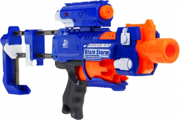 Blaze Storm is een betrouwbare schuimblaster in blauw-oranje uitvoering die elke jonge fan van actiegames zal bekoren. Dankzij de automatische elektrische aandrijving op 3× AA-batterijen en het voorladen genieten kinderen van soepel en veilig speelplezier. De laserzoeker (2× LR44 meegeleverd) helpt nauwkeurig richten, terwijl het venster voor het verwijderen van vastgelopen munitie een probleemloze werking garandeert.