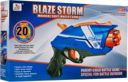 Leuk en veilig kinderpistool BLAZE STORM Hot Fire met een handmatig veermechanisme voor enkelvoudig schieten, biedt eenvoudig frontaal laden, bereik tot 10 m en in de verpakking 20 schuimpijltjes. Compacte en ergonomische constructie, ideaal voor kinderen vanaf 6 jaar.