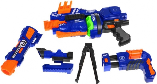 De modulaire kinderblaster Blaze Storm biedt actievol maar veilig speelplezier, binnen en buiten. De elektrische halfautomaat met trommelmechanisme en magazijn maakt snelle enkele schoten en korte salvo’s mogelijk, terwijl de foamkogels zacht en huidvriendelijk zijn. Dankzij het voorvizier, de stabilisator en de mogelijkheid tot loopverlenging leren kinderen nauwkeurig mikken en verschillende speelscenario’s creëren.