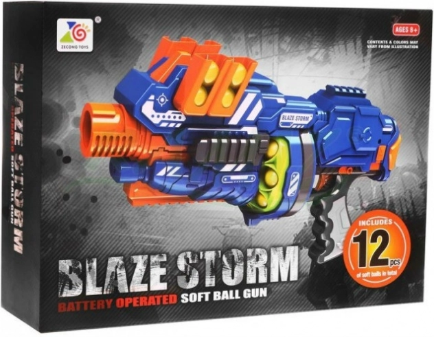 Leuk en veilig actiespel voor kinderen vanaf 8 jaar! Het halfautomatische Blaze Storm-geweer schiet zachte foamkogels met een bereik tot 10 m, biedt een halfautomatische elektrische modus, een magazijn voor 8 patronen en extra houders voor reservemagazijnen. Inclusief 12 stuks foamprojectielen voor direct speelplezier.