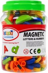 Ontdek creatief leren door te spelen. Deze uitgebreide set in een praktische plastic doos met handvat biedt alles voor een eerste kennismaking met het alfabet, cijfers en eenvoudige rekenoefeningen. Dankzij de sterke magneten hechten de onderdelen aan de meeste metalen oppervlakken en zijn ze perfect voor magnetische borden.