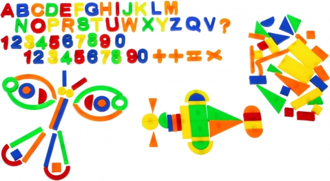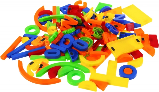 Een complete mix van letters, cijfers, vormen en symbolen biedt eindeloze combinaties voor het vormen van woorden, rekenen en creatief knutselen.
