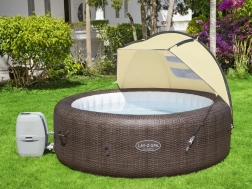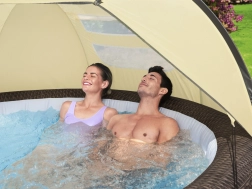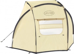 Deze schuilplek voor jacuzzi's biedt geweldige bescherming en privacy tijdens uw ontspanning in de tuin. Met ventilerende ramen die vrije luchtstroom garanderen en eenvoudige montage, is het een ideale aanvulling voor alle soorten Bestway jacuzzi's, behalve de modellen St. Lucia en Vancouver.