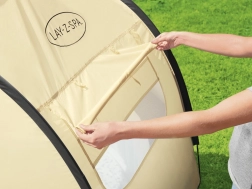 Snelle en eenvoudige montage, zodat u de schuilplek snel kunt opzetten en kunt genieten van ontspanning.