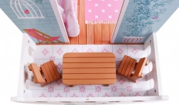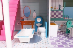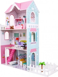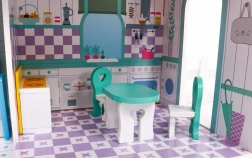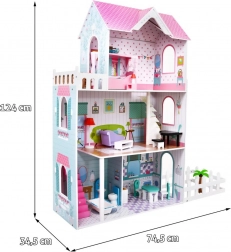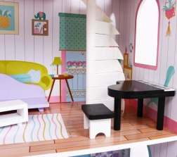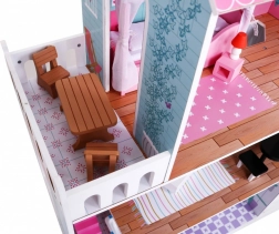 Het houten poppenhuis vormt een ideale speelomgeving voor kinderen vanaf 3 jaar. Gemaakt van duurzaam hout, dit huis is geverfd met veilige, niet-toxische verf die bescherming biedt tegen schade. Drie verdiepingen vol stijlvolle inrichting, inclusief keuken, badkamer, woonkamer, slaapkamer en terras, bieden verschillende speelscenario's.