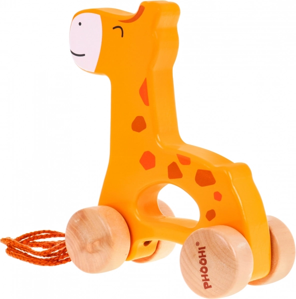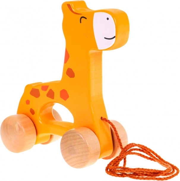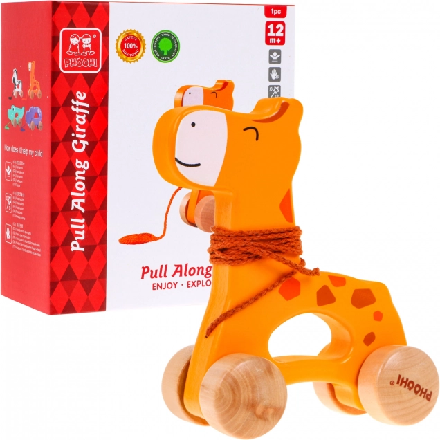 Houten wieltjes en een eenvoudig koordje laten kinderen de giraf gemakkelijk over verschillende oppervlakken trekken.