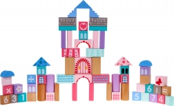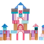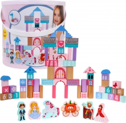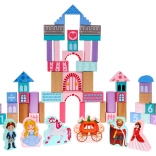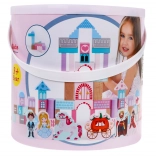 De set bevat kleurrijke blokken die gebruikt kunnen worden om een sprookjeskasteel te bouwen, ter stimulering van de creativiteit van kinderen.