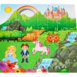 De set bevat houten speelgoed in de vorm van sprookjesfiguren, wat de mogelijkheden voor fantasierijk spel vergroot.