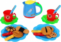 Een theepot, kopjes met schoteltjes, bordjes en zoetigheden laten kinderen serveren alsof het een echt feestje is.
