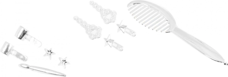 - Accessoires: kam, decoratief elastiekje, speldjes