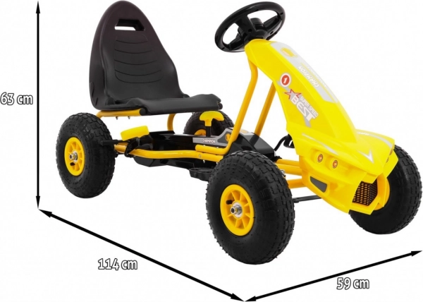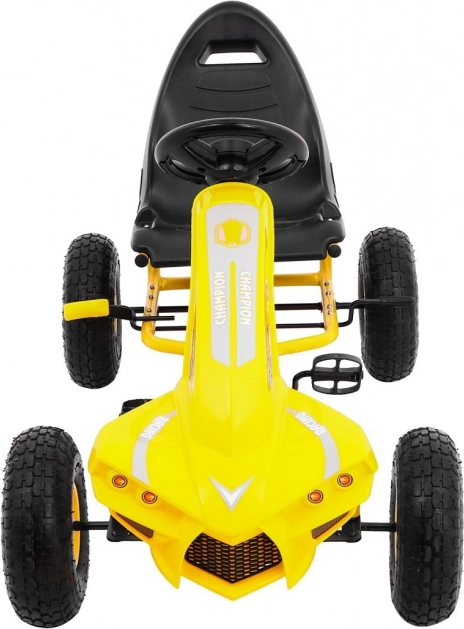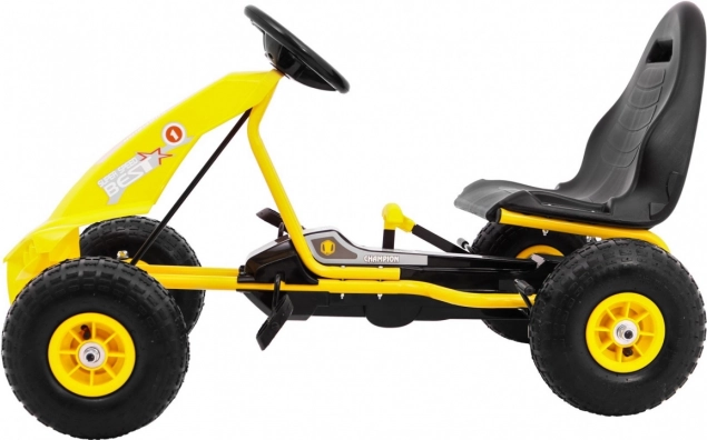 De Champion skelter in een opvallende gele kleur is een ideale keuze voor actieve kinderen. De robuuste combinatie van metaal en kunststof, de volledig afgedekte ketting en gelagerde wielen zorgen voor een lange levensduur en een soepele werking. De ergonomisch gevormde stoel met tweedelige afstelling groeit met het kind mee en biedt stabiele rugondersteuning.