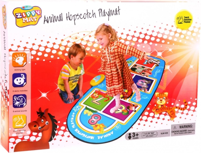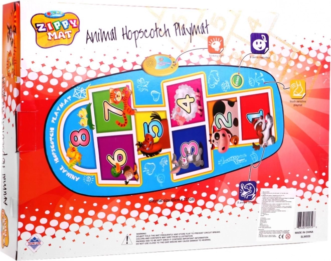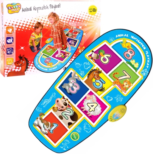 Deze kleurrijke springmat combineert bewegen, leren en plezier. Elk van de 8 grote vakken is gekoppeld aan een ander dier (hond, koe, konijn, lammetje, paard, eend, kat, vogeltjes) en geeft bij het indrukken zijn karakteristieke geluid. Het grote bedieningspaneel met lampjes en luidspreker brengt het spel tot leven met melodieën en motiveert kinderen om actief te bewegen.