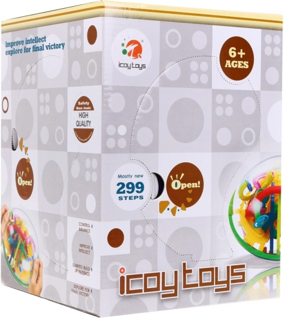 Ontdek een verslavend logisch spel voor kinderen én volwassenen: een transparante bal verbergt een kleurrijk 3D-doolhof met 299 niveaus, waarin je een knikker door tunnels, hellingen en obstakels leidt. Ontwikkelt geduld, logisch denken en fijne motoriek. Duurzame uitvoering, diameter ca. 18 cm, geschikt vanaf 6 jaar.