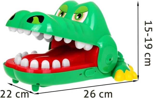 Dit populaire kinderspel met een krokodil zorgt elke ronde voor spanning en plezier. Het doel is om afzonderlijke tanden in te drukken, op lichtsignalen te letten en de zere tand te vermijden – anders klapt de krokodil de bek dicht! Dankzij lichtindicatoren en verschillende snelheden is het spel aantrekkelijk voor jongere en oudere kinderen.