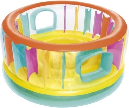De opblaasbare BESTWAY-trampoline is een geweldig speelcentrum voor in de kinderkamer of in de tuin. De zachte, met lucht gevulde bodem en de veerkrachtige zijwanden creëren een veilige en comfortabele omgeving voor de eerste sprongen en voor de ontwikkeling van balans en coördinatie. Twee toegangs-/observatieraampjes maken het voor kinderen gemakkelijker om naar binnen te gaan en geven ouders goed zicht op het spel.