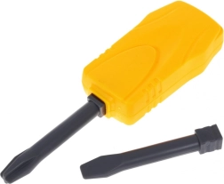 De boor heeft 2 verwisselbare bits die ook als handschroevendraaier gebruikt kunnen worden.