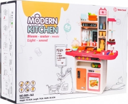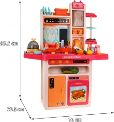 Deze stijlvolle kinderkeuken stimuleert creativiteit en de fijne motoriek. Dankzij realistische functies zoals stromend water, een stoomproducerende brander, lichten en geluiden beleven kinderen een authentieke kookervaring. Met oven, koelkast, afzuigkap met lampje en veel opbergrekjes.