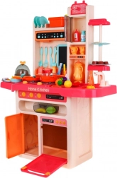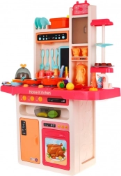 De kraan laat echt water lopen en een van de branders produceert zachte stoom. Kinderen kunnen zo veilig en leuk koken alsof het in een echte keuken is.