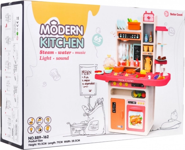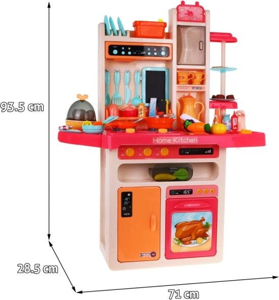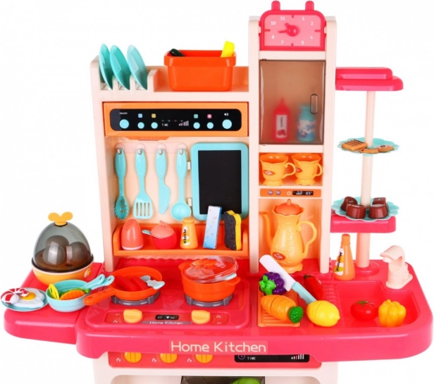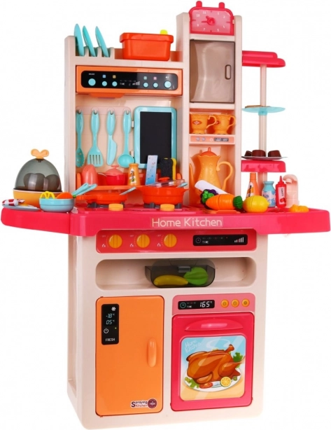 Kinderkeuken met watertap en stoombrander, audiopaneel, 65 stuks – Roze
