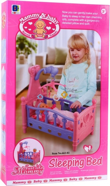 Poppenbedje met mobiel en beddengoed, 3+