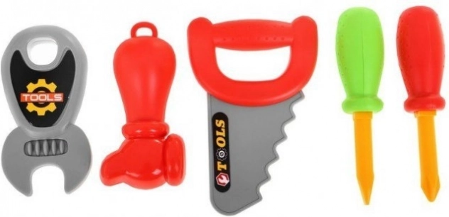 Omvat verschillende tools zoals een steeksleutel, hamer, zaag en schroevendraaiers. Elk stuk heeft levendige kleuren voor nog meer plezier.